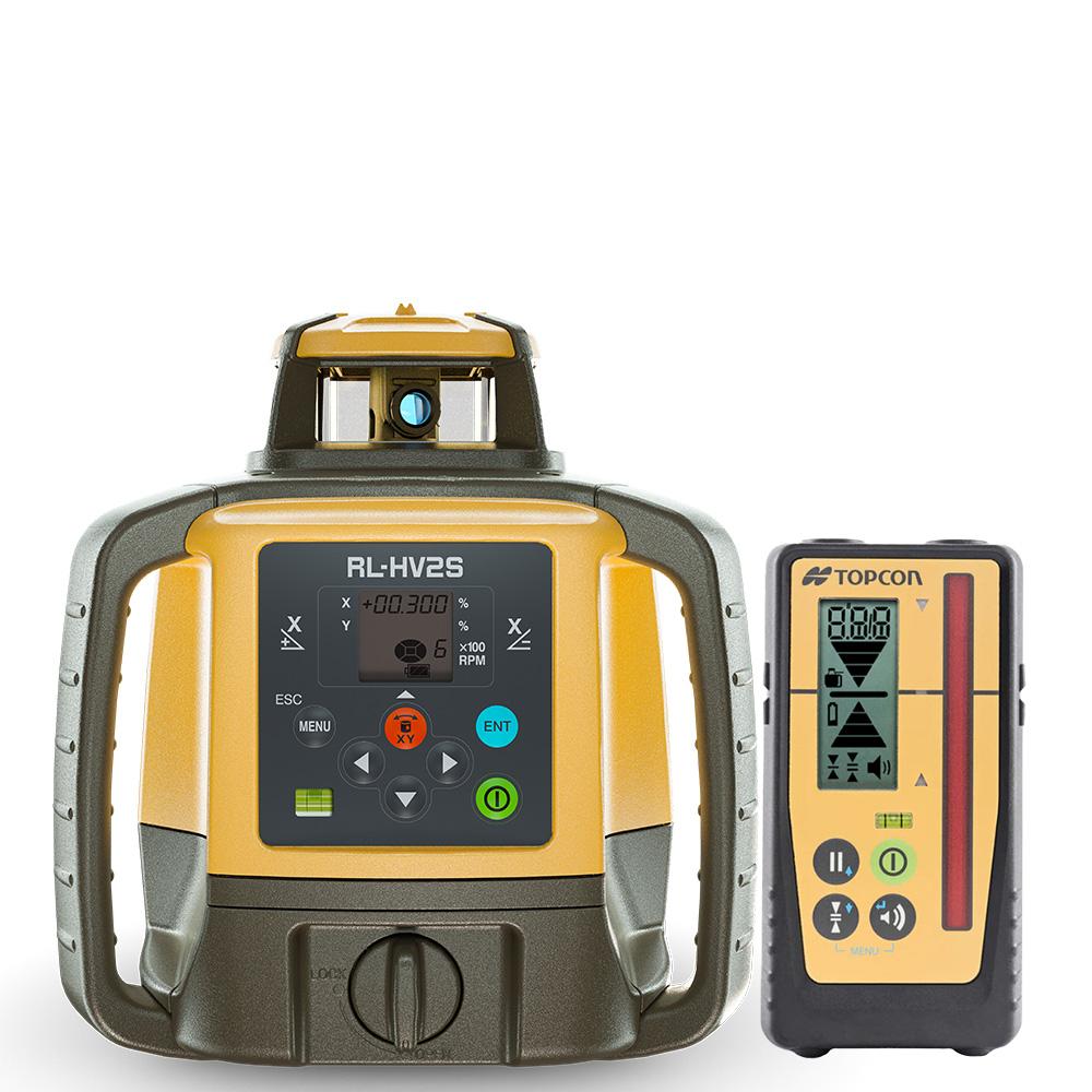 Niwelator laserowy Topcon RL-HV2S ma możliwość pracy zarówno w pomieszczeniach zamkniętych jak i na zewnątrz, wyznacza wiązkę w poziomie lub w pionie, generowana płaszczyzna może być pochylana w jednym lub dwóch kierunkach (w zakresie ±15% dla osi X i Y). Wprowadzanie spadków odbywa się cyfrowo z pokładu lasera (wyświetlacz LCD). Prędkość obrotów głowicy może być zmieniana (300/600 obr./min), dzięki czemu niwelator może być wykorzystywany także do pracy z systemami sterowania maszyn. Funkcja maskowania wiązki lasera umożliwia wyłączenie emisji lasera w zadanym zakresie, co uchroni nakładanie się wiązek laserowych w przypadku gdy na budowie pracuje kilka niwelatorów laserowych.